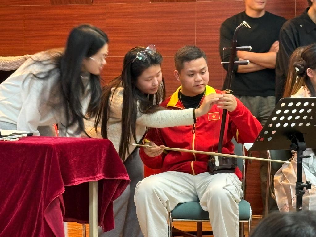 越南留学生杜元甲表示:“这次真的很精彩也很有趣,让我们感受到了中国民乐的魅力。希望以后还能有这么开心的课堂。”此次活动以民乐为媒搭建文化桥梁,是学校深化跨文化交流的生动实践,未来我院将持续丰富实践课形式,让留学生在沉浸式体验中读懂中国文化。