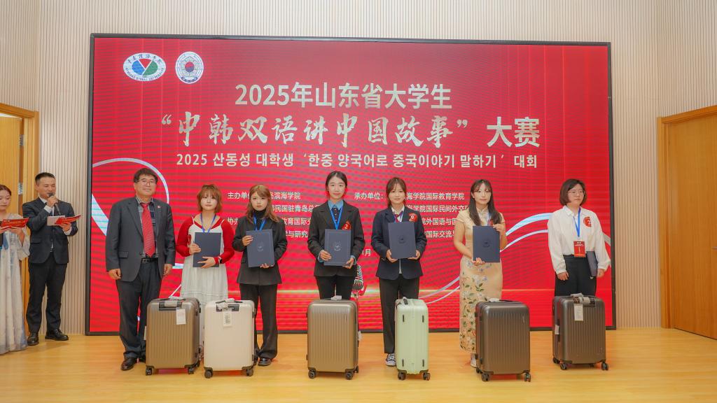 本次大赛由大韩民国驻青岛总领事馆与青岛滨海学院联合主办,吸引全国24所高校的43名选手参赛,首次采用中韩双语形式讲述中国故事,推动跨文化传播实现“双向共鸣”。比赛中,金玟珠以“鲁菜的历史及发展”为主题展开演绎,循着秦代到民国的时间脉络,深挖鲁菜文化底蕴。她以扎实的中韩双语功底、生动的叙事表达,展现了对中国文化的深刻理解和跨文化传播能力,充分彰显了我校留学生的综合素质与青春风采。