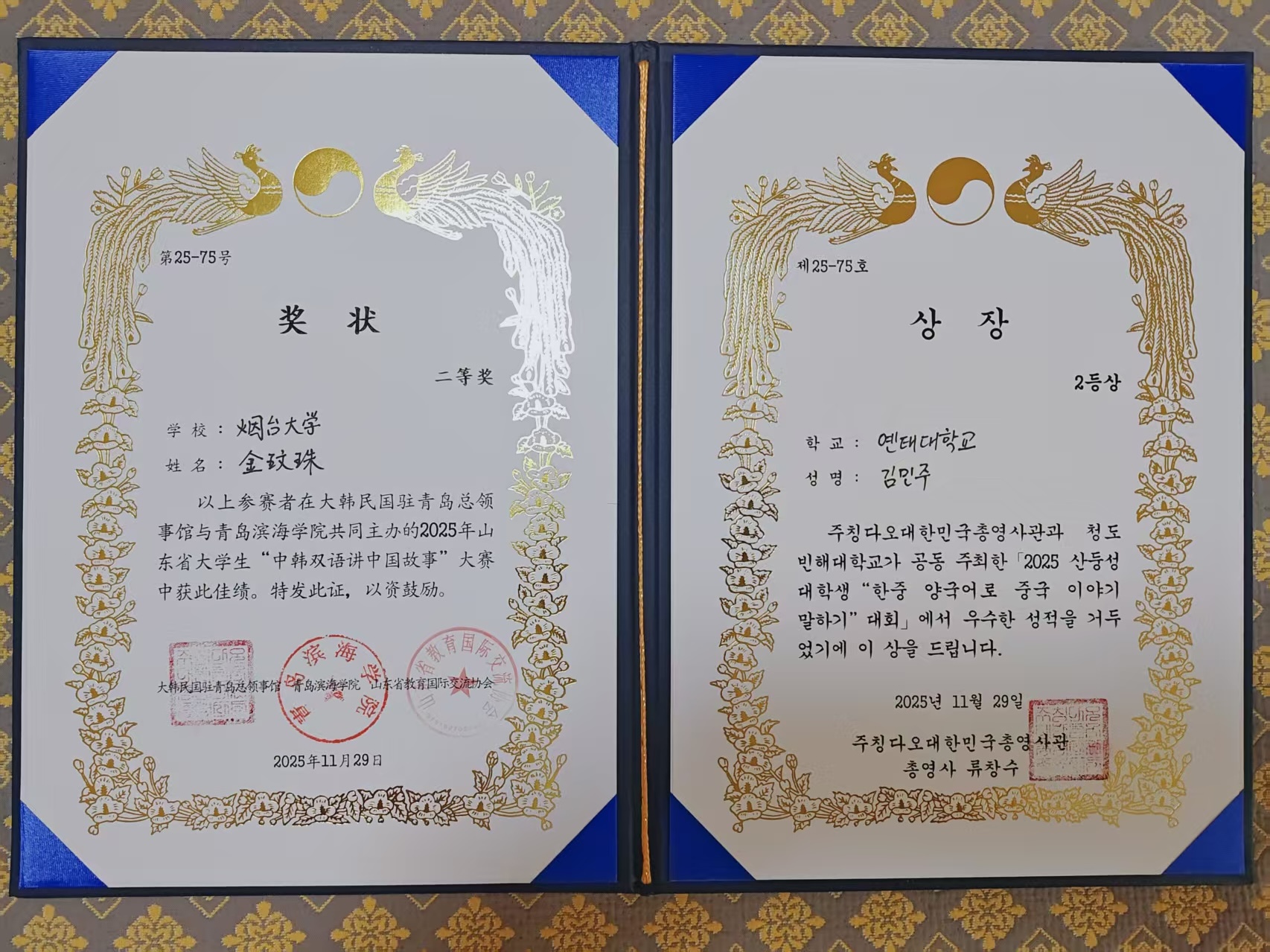 11月29日,山东省大学生“中韩双语讲中国故事”大赛在青岛滨海学院圆满落幕,我校国际教育交流学院来华留学生金玟珠凭借出色表现,荣获大赛二等奖。