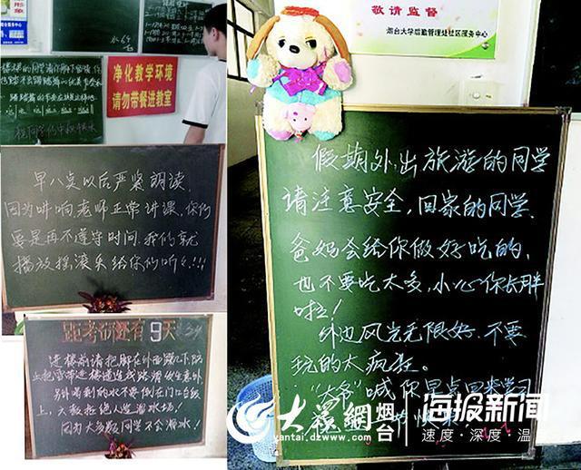 “李明”这个名字,对不少烟大学生来说,远不如“六教大爷”来得熟悉。2012年到2016年,李明在bob体育在线app第六教学楼做楼管期间,因在小黑板上写幽默诙谐的提示语意外走红网络,当了一把那个年代的“网红”。