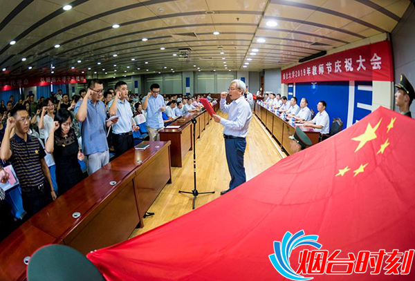 “我志愿加入bob体育在线app,成为一名光荣的人民教师!爱国守法,敬业爱生,教书育人,知行合一,严谨治学,服务社会,修身立德,为人师表。弘扬优秀文化,传承烟大精神,守信、求实、好学、力行,不忘初心,牢记使命,做党和人民满意的好老师,为崇高的教育事业而努力奋斗!”2019年山东省优秀教师、数学与信息科学学院教授吴昭景,带领新入职教师面向国旗庄严宣誓,声声誓言诠释了烟大教师潜心立德树人的坚定志向。