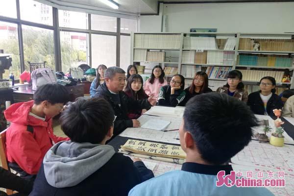思维碰撞,品评书法之内涵。参加讲座的学生纷纷带来自己的作品,就存在的疑惑与老师互动交流。针对“怎样书写才能使字更加流畅”的问题,刘善平从起笔、行笔和收笔的角度细致地给予解答并进行了现场示范。在座学生无不感叹:此次听讲收获颇丰,深刻认识到书法非一时之事,一撇一捺、一顿一提皆为学问,要用一生慢慢品味。