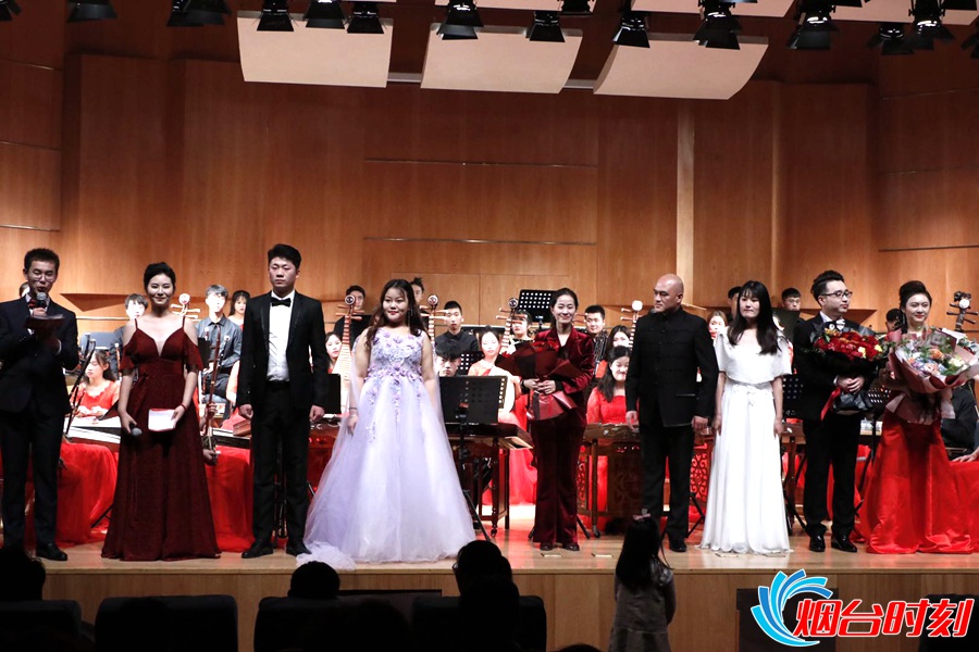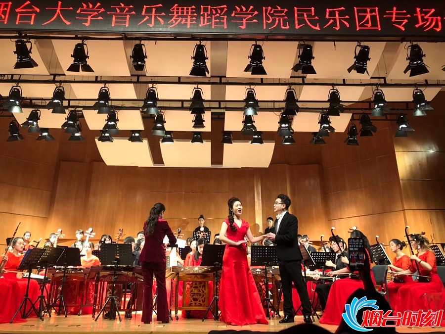 除了有经典民乐作品之外,备受期待的曲目《等着我亲爱的人》是当晚亮点之一。此曲是大型民族歌剧《沂蒙山》中的主题音乐,也是由姚金佳老师改编,特邀嘉宾姜莉丽、于潜老师演唱,现场掌声雷动!最后,在脍炙人口的《难忘今宵》中,音乐会进入了最高潮,并在热烈的掌声和歌声中落下帷幕。