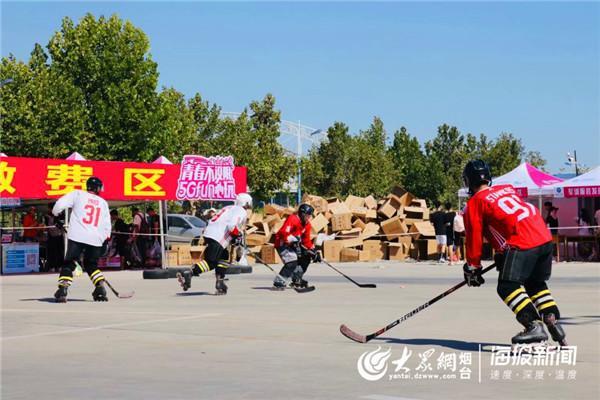 另一边,体育学院带来的“轮滑球”表演也帅气登场。队员们身着护具,脚踏轮滑鞋,在现场展示了一段精彩的对抗表演。据了解,这只轮滑球队在今年6月曾荣获山东省第一届学生轮滑球锦标赛冠军。