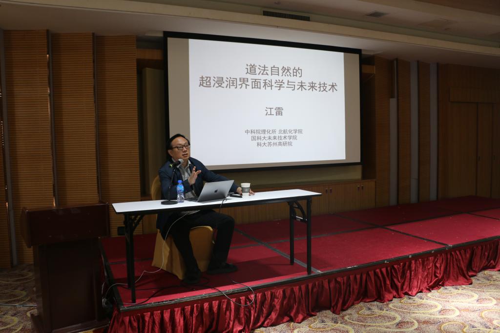 来访期间,江雷院士面向烟大师生作了题为“原创科研的三个境界和八个层面”的学术报告。近百名师生现场参加,同步进行了网上直播。他结合自己回国二十多年来的科研经历,聚焦“如何更好地进行原创科研”,提炼出原创科研选题的“三个境界和八个层面”:有所发现、有所发明和有所创造三个境界;改写教科书、领域遗留挑战、总结普适规律、研制先进仪器、研发关键技术、重视偶然发现、应用全新理论和生命启发科研的八个层面,给师生做了精彩纷呈的报告,并与现场师生进行了交流。报告全程江雷院士旁征博引,既深入浅出,又发人深省,与会师生深受启发,其“道法自然”的创新科研思路对广大教师和同学的科研工作起到了很好的启发和指导作用,大家纷纷表示报告开拓了学习视野和科研思路,获益匪浅。