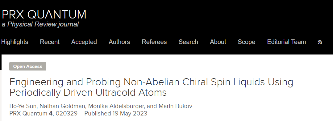近日,bob体育在线app物理与电子信息学院教师孙伯业博士与比利时布鲁塞尔自由大学Goldman教授,德国普朗克研究所Bukov教授在量子计算领域顶级期刊,由美国物理学会主办的《PRX Quantum》(影响因子:7.514)上发表了高水平研究论文。论文题目为"Engineering and Probing Non-Abelian Chiral Spin Liquids Using Periodically Driven Ultracold Atoms",孙伯业博士为第一作者及共同通讯作者。