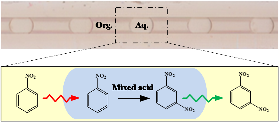 间二硝基苯是一种重要的基础工业化学品,广泛用于农药、感光材料、印染等行业。硝基苯的混酸硝化是工业生产间二硝基苯的核心过程之一,然而多相、快速、强放热的特征使其难以在传统釜式反应器实现高安全性、高选择性的过程控制。