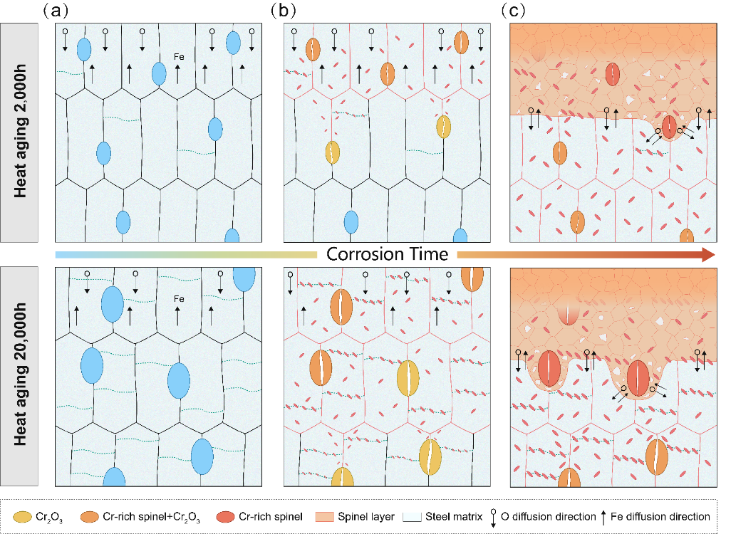 图1.热老化加速9Cr F/M钢液态铅铋合金氧化腐蚀微观机制