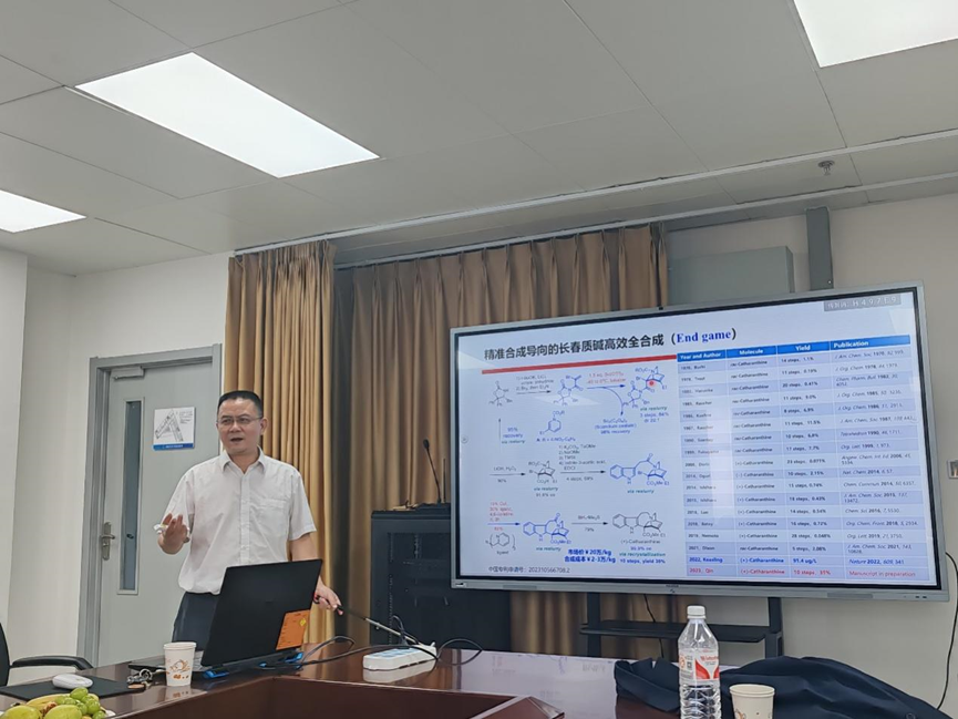 秦勇教授作了题为“精准合成化学导向的天然产物全合成-从基础研究到产业应用”的学术报告。报告会主要从基础研究和产业应用两个方面进行分享,秦勇教授以颠覆性的精准仿生合成技术改变吗啡类药物的产业模式为例,详细介绍了其团队从基础研究到产业应用的研究过程。同时,秦勇教授还以基础与应用并行的天然产物全合成为例,介绍其团队在减重药奥利司他、抗凝血药磺达肝奎钠等复杂结构的天然药物产业化方面的进展。报告结束后,秦教授与在场师生展开探讨交流,现场氛围热烈活跃。