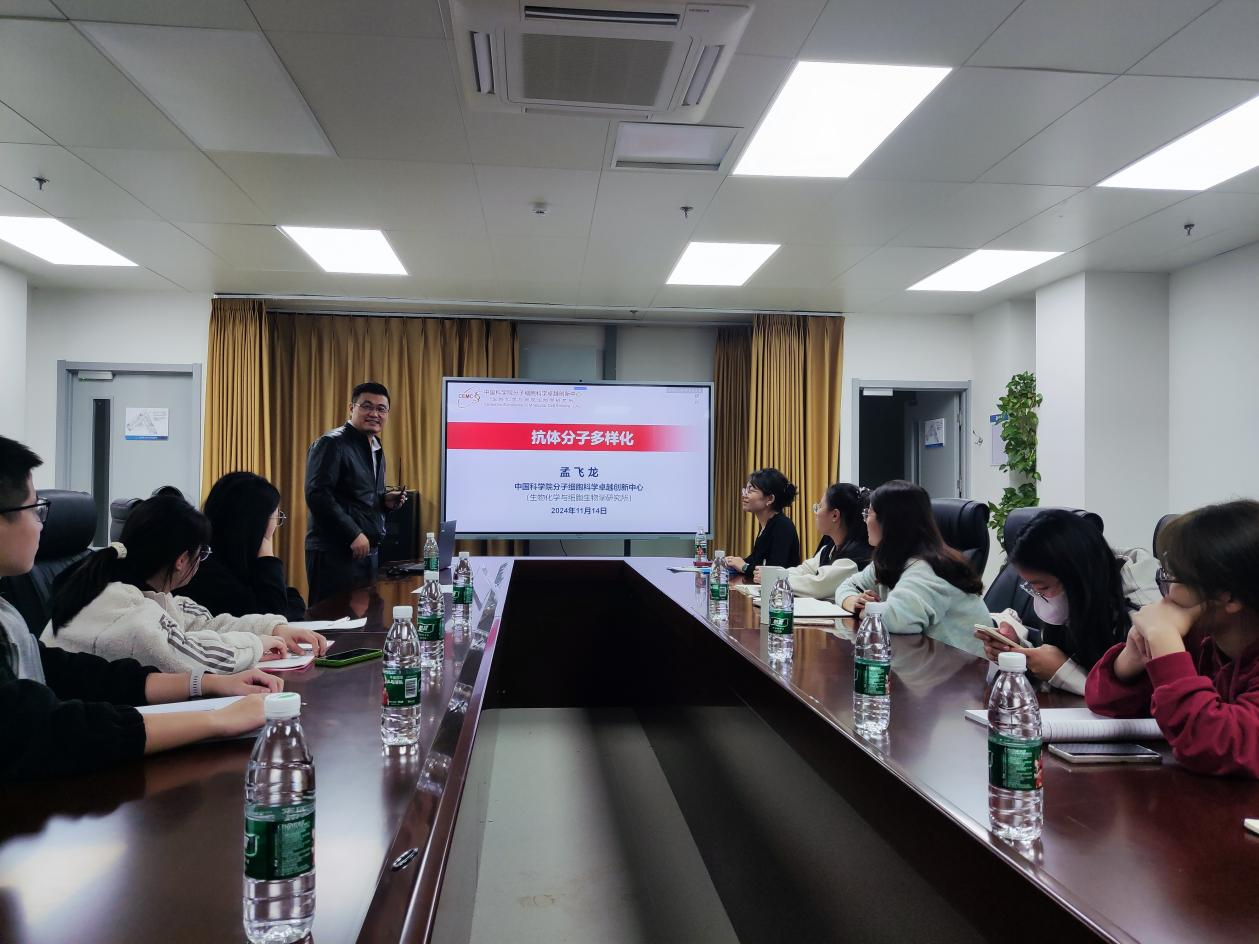 孟飞龙教授作题为“抗体分子进化中的突变、筛选与再设计”的学术报告。他从专业的角度对其课题组的抗体研究工作进行详细介绍,从经典的生化方法出发,联合高通量测序技术、分子动力学模拟和单分子生化方法等多种研究手段,在DNA尺度水平揭示了抗体基因CDR超突变背后的生化机制,发现进化中抗体基因CDR编码区DNA序列富含柔性基序,更易捕获AID进而导致了突变偏好的发生,解决了困扰这一领域40多年的科学难题,为下一代抗体基因人源化动物模型设计提供了底层理论。
