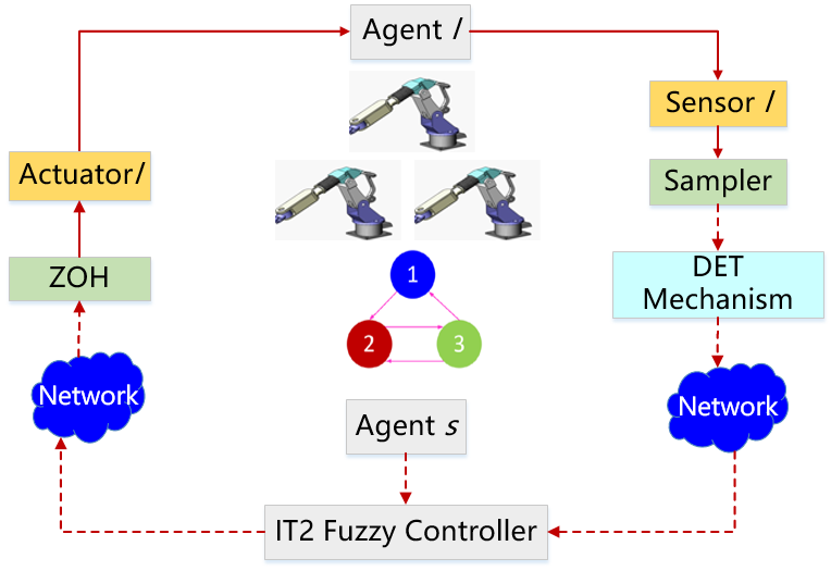 该研究针对参数不确定多智能体系统,通过设计动态事件触发模糊控制器解决了一致性问题。采用区间二型模糊系统对多智能体进行建模,基于动态事件触发机制设计控制器。考虑采样特征构建新型Lyapunov-Krasovskii泛函,由此得到控制器存在的充分性条件。控制方案保证所有智能体实现指数一致性,所提出的控制算法成功应用于机械臂工程系统。