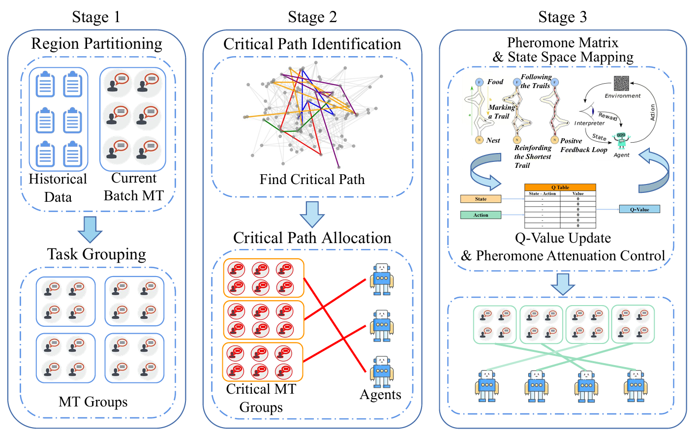 该研究面向快速发展的三维城市感知应用背景,针对多空间、多类型、强动态约束的群智感知任务分配问题,系统性提出了多空间公平感知任务分配(Multi-Space Fairness Task Allocation,MSFTA)框架,如图1所示。该研究综合考虑地面空间、低空空域及地下空间等多维环境之间的耦合关系,围绕空间划分、任务调度、公平性控制等关键难题开展深入研究,并创新性地提出动态协同优化方法,显著提升了感知系统在复杂环境下的效率与公平性。