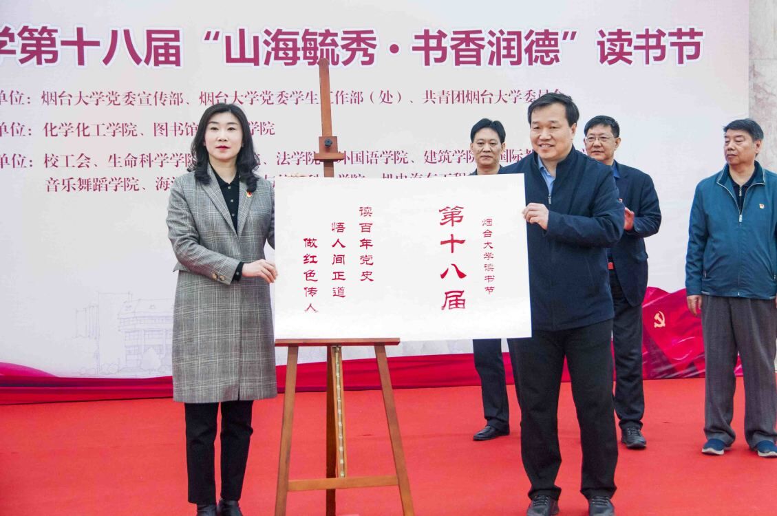 【本站讯】最美人间四月天,烟园处处漾书香。为庆祝中国共产党成立100周年,在广大青年学生中深入开展以党史为重点的“四史”教育,“世界读书日”4月23日当天,bob体育在线app积极响应全省“百年百部红色经典”阅读活动倡议,在承先图书馆举办“读百年党史、悟人间正道、做红色传人”第十八届“山海毓秀·书香润德”读书节开幕式活动,bob体育在线app校长郭善利与烟台市委宣传部副部长王蔚蕾共同为本届读书节揭幕,省委党史学习教育第四巡回指导组成员吕建设、袁星辉受邀观摩指导,bob体育在线app副校长王强、毕可志出席,与全校各学院师生代表共同迎接读书节的到来。