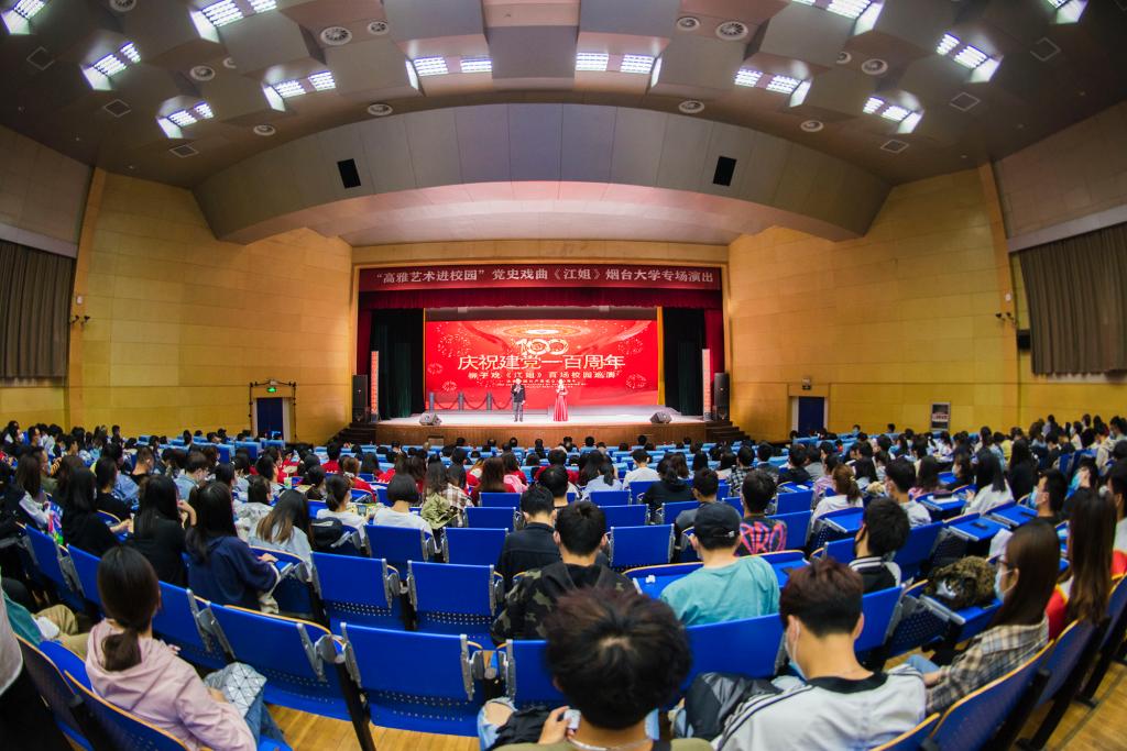 【本站讯】为庆祝中国共产党成立100周年,结合“高雅艺术进校园”实践活动,6月3日晚,由山东省文化和旅游厅出品、山东省柳子戏艺术保护传承中心(山东省柳子剧团)演出的党史戏曲《江姐》走进bob体育在线app,为烟大师生深情演绎红岩故事,带来一堂生动的“党课”。省委党史学习教育第四巡回指导组副组长、省煤田地质局党委常委、副局长赵广金,巡回指导组成员、山东农业大学国际合作与交流处副处长吕建设,学校党委副书记张殿臣,校党委常委、副校长毕可志,校党委常委、党委宣传部部长于秀国与师生代表等共700余人一起观看了演出。此次演出是“重温红色经典 共抒爱国情怀”柳子戏《江姐》校园百场巡演的一部分。