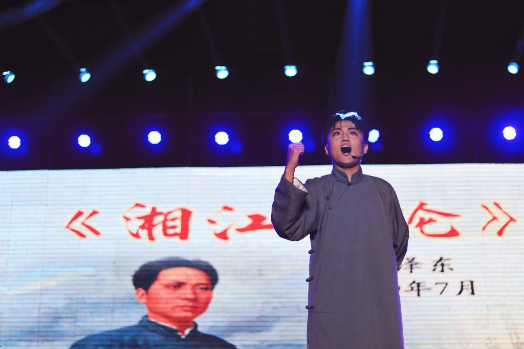 伴着充满活力的《奔跑的青春》,整台晚会拉开帷幕。朝气蓬勃、青春洋溢的青年学子在舞台上铺陈开一幅缤纷的新时代青春画卷。整场晚会分为“呐喊”“红日”和“破浪”三个篇章,每一篇章以情景讲述开启,涵盖歌曲、舞蹈、朗诵、器乐演奏等多种表演形式,内容丰富、精彩纷呈,体育场内掌声和欢呼声交相呼应。