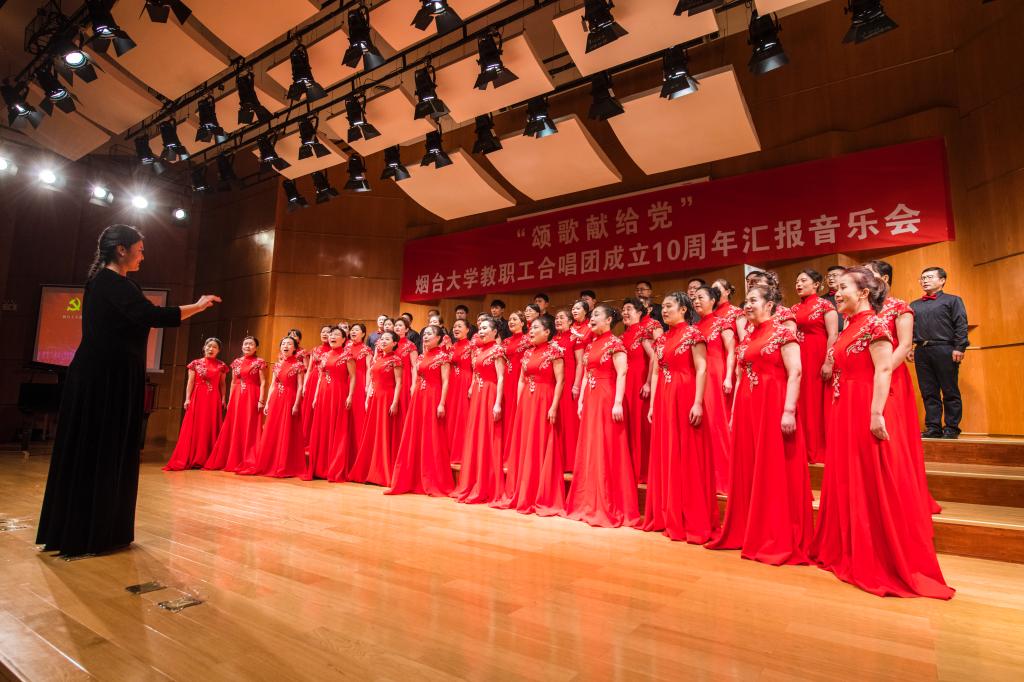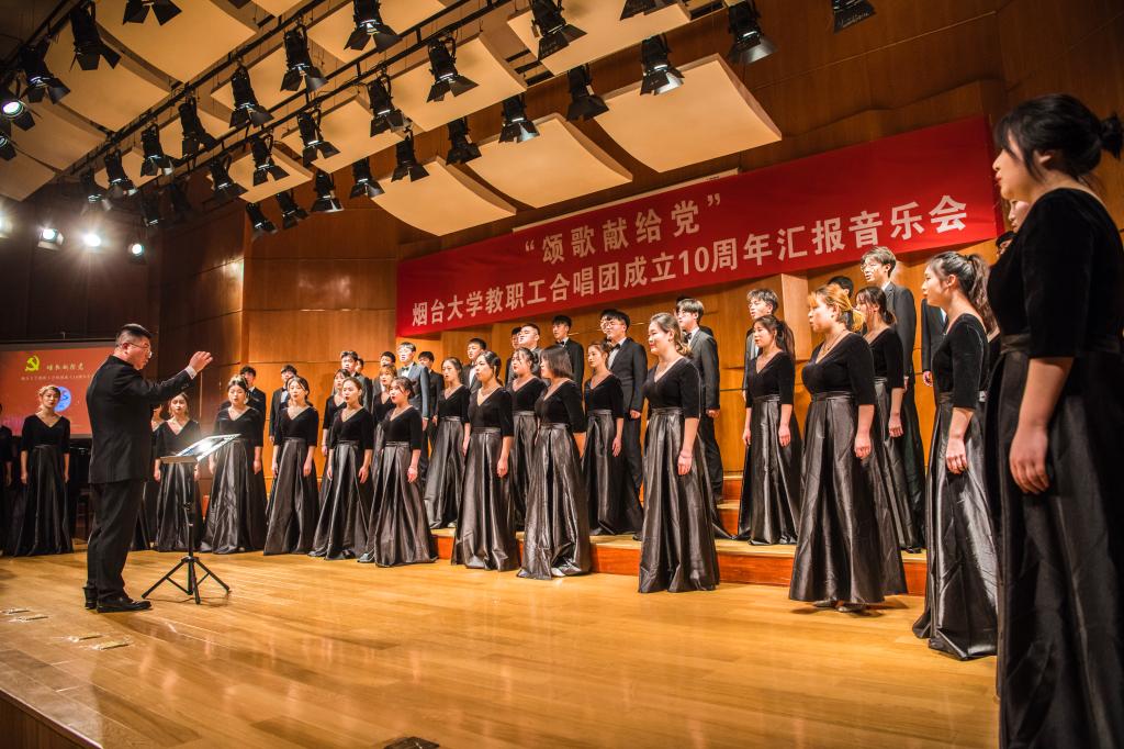 《唱支山歌给党听》《映山红》《叫一声同志多么亲》《永远》《向往》等红色经典合唱作品,表达了bob体育在线app教职工对党的无限热爱和对新时代的热情歌颂。侯朝洞、潘奠华、王鹏、陶俊燕分别带来的《跟你走》《再唱洪湖水》《百年》《幸福山歌》等经典独唱作品,以及贺利坚等进行的武术表演,展现了合唱团团员们实力不俗的唱功和团员们的多才多艺。音乐舞蹈学院“海之韵”合唱团带来的《在这个世界相遇》《你好百灵鸟》《我有一个恋爱》《一荤一素》以及学校书法美术家协会赠送的书法作品“岁月如歌”,共同表达了各协会对合唱团成立十周年的美好祝愿。