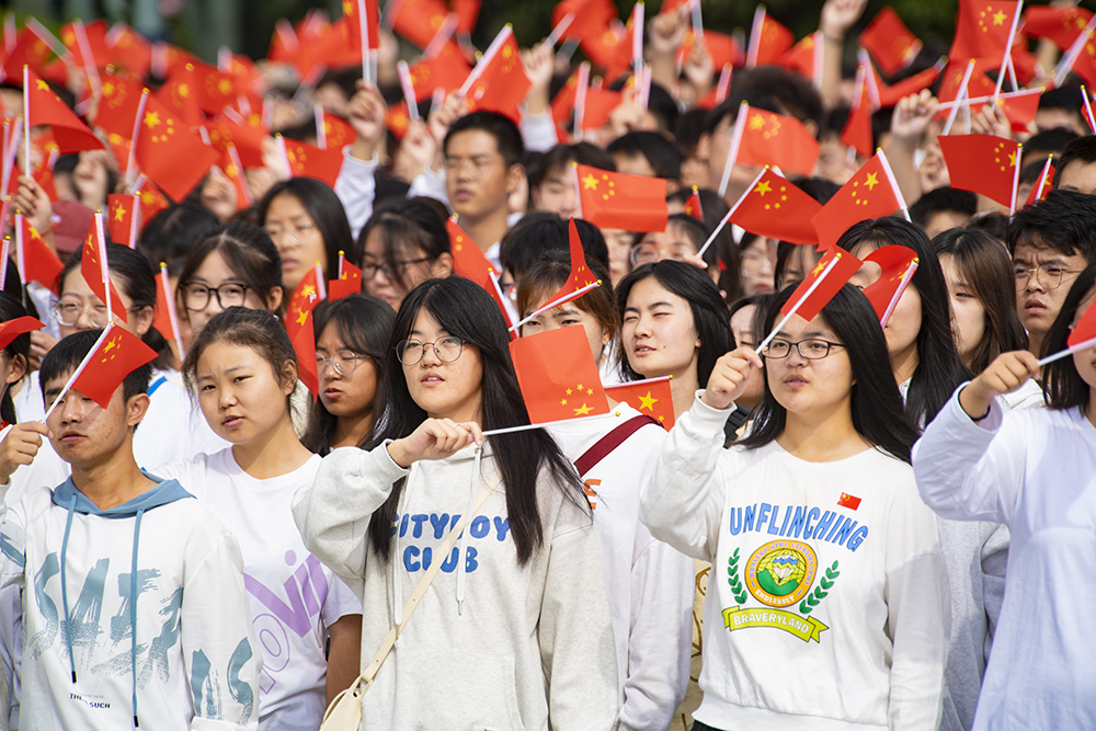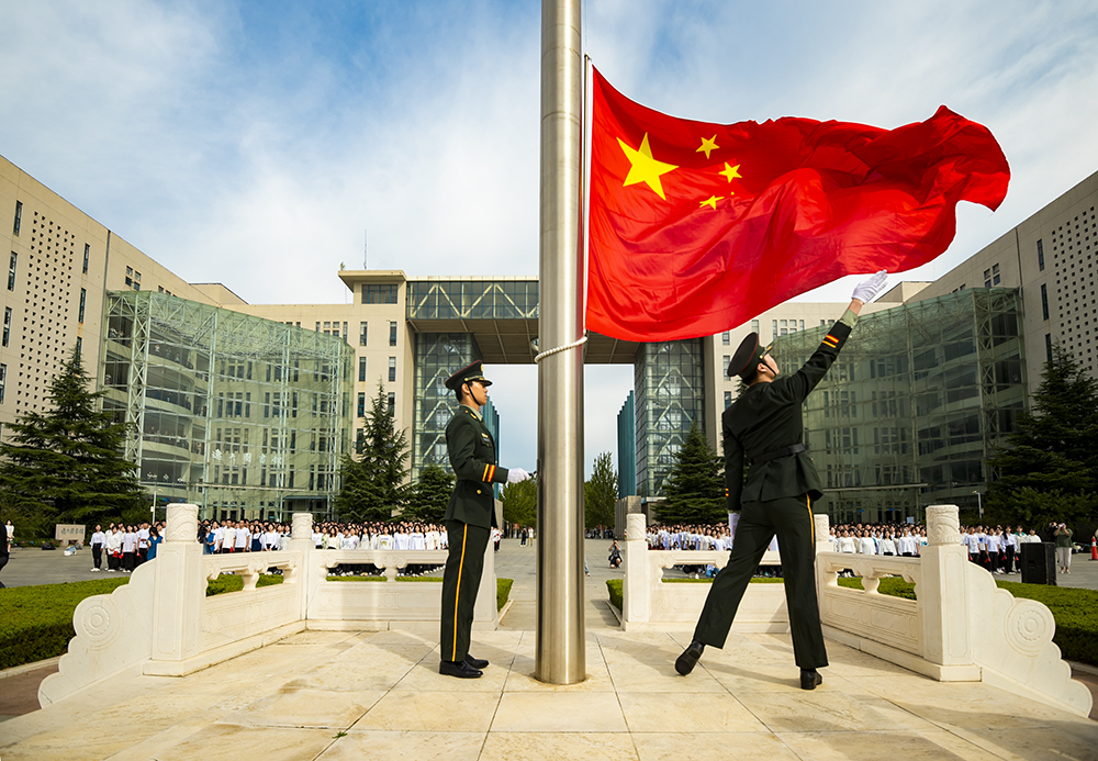 在升旗仪式现场,烟大学子手持小国旗,身穿白色衬衫,佩戴团徽井然有序地站在国旗台前。bob体育在线app国旗班踏着铿锵有力的步伐,肩扛国旗向主席台走去。随后,升国旗,全体同学行注目礼、唱国歌。伴随慷慨激昂的国歌,五星红旗冉冉升起,牵动着每一位老师和同学的爱国心,激起了全体师生的爱国情。