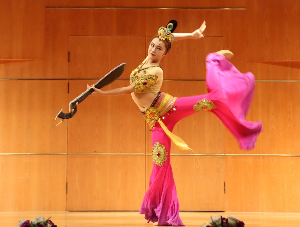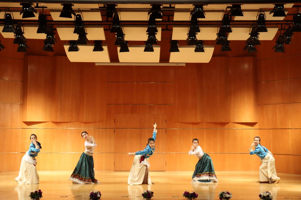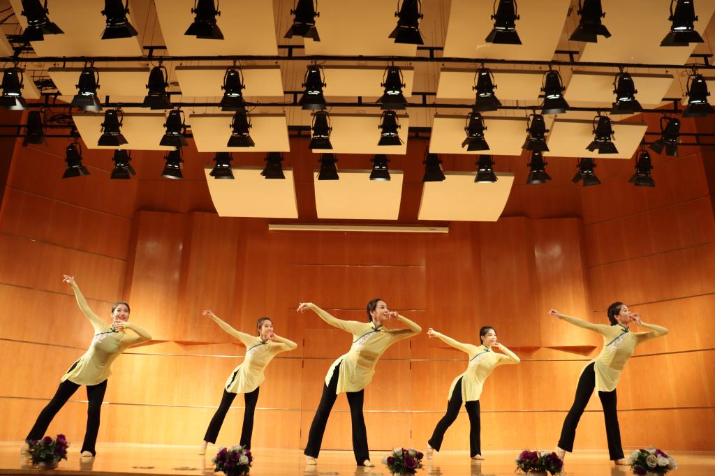 九曲黄河,奔腾向前,四部合唱《黄水谣》描写了奔流不息的黄河之水,描绘着人们在美丽肥沃的土地上辛勤耕耘的景象。独唱《雪白的鸽子》,舞蹈《马尔康的姑娘》《反弹伎乐天》,展现了青海、宁夏、甘肃等地的独特艺术表现形式,共同映照出中华民族自强不息、奋斗不止的品格。西洋管弦五重奏《游击队歌》,熟悉的旋律响起,描绘了机智勇敢的游击队员的艺术形象,表达了坚韧不屈的民族精神。唢呐《天府好》、歌舞《沂蒙颂》充分挖掘黄河特色,生动演绎黄河故事,每一个作品传递的信念和精神,在音乐声中娓娓道来,深深感染着现场师生。演出在歌曲《国家》中落下帷幕。