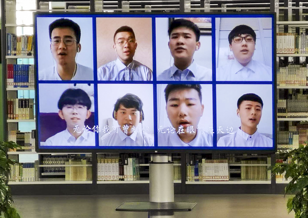 开幕沙龙上,图书馆馆长任汇江和化学化工学院党委副书记胡大鹏代表承办单位分别介绍了本届读书节的相关活动,化学化工学院教师代表李桂芝和图书馆教师代表侯玉萍各自为在线学生推荐分享了两部经典书籍和影片,第十六届读书节的读书之星、人文学院庄丹作为学生代表分享了自己的阅读经历与感悟。现场还播放了由各学院学生代表组成bob体育在线app“领读者”团队原创的云端接力朗诵短视频《书香家国情》,以及音乐舞蹈学院与化学化工学院学子共同线上合唱MV《让世界充满爱》,表达了为中华之崛起而读书的志愿和期待人类团结一心让世界更加美好的祝福。