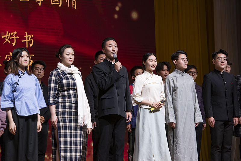 在红色经典诵读环节,学生代表为大家带来了“红色诗意”“红色向往”“红色深情”三个篇章的深情朗诵。学生情绪饱满、诵读扣人心弦,现场观众仿佛身临其境,置身于峥嵘岁月。