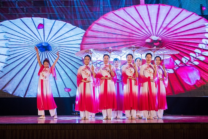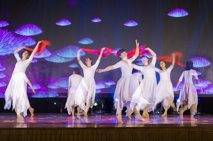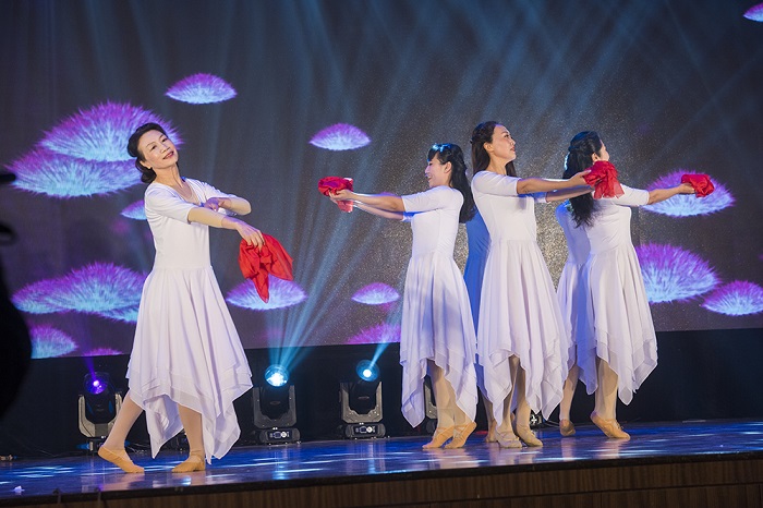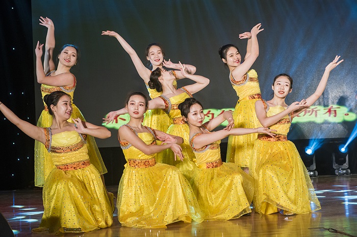 长号独奏《巴燕波尔卡》奏响了新年的乐声,bob体育在线app这一巨轮也将乘风破浪,继续远航。歌曲对唱《站起来》、现代京剧《红梅赞》、歌伴舞《初心依旧》展现了改革开放40年来,中国共产党不忘初心,牢记使命,实现了从“赶上时代”到“引领时代”的伟大跨越。古典舞《挽扇仕女》,用一把扇子展现了中国女性特有的含蓄内敛、平和稳静的秀美端庄。《美人吟》,婀娜多姿的舞蹈刻画了我校女教职工巾帼建功、在新时代征程中谱写半边天壮丽篇章的动人风采。《绒花》《芳华》更是展现了广大教职员工多彩的文化生活与良好的精神风貌,我校艺术教育的蓬勃发展。有氧舞蹈《韵舞风扬》将晚会推向高潮。