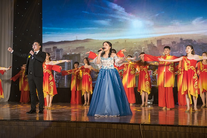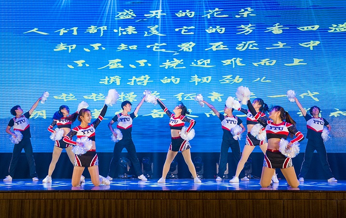 原创歌曲党支部活动三部曲《组织生活会》《三会一课》《三严三实》拉开晚会帷幕,展现我校基层党支部建设风采和活力,表达了我校在新时代全面加强党的建设,不忘初心使命,努力开拓创新的决心。2018年度师德标兵代表诗朗诵《我们的誓言》,舞蹈《我生长的地方》、啦啦操《别人家的小孩》展现了我校师生的激情与活力,彰显了我校师生丰富的课外生活。新时代的烟大人始终将个人理想与国家前途命运紧紧联系在一起,在自己平凡的岗位上,贡献着自己的力量。
