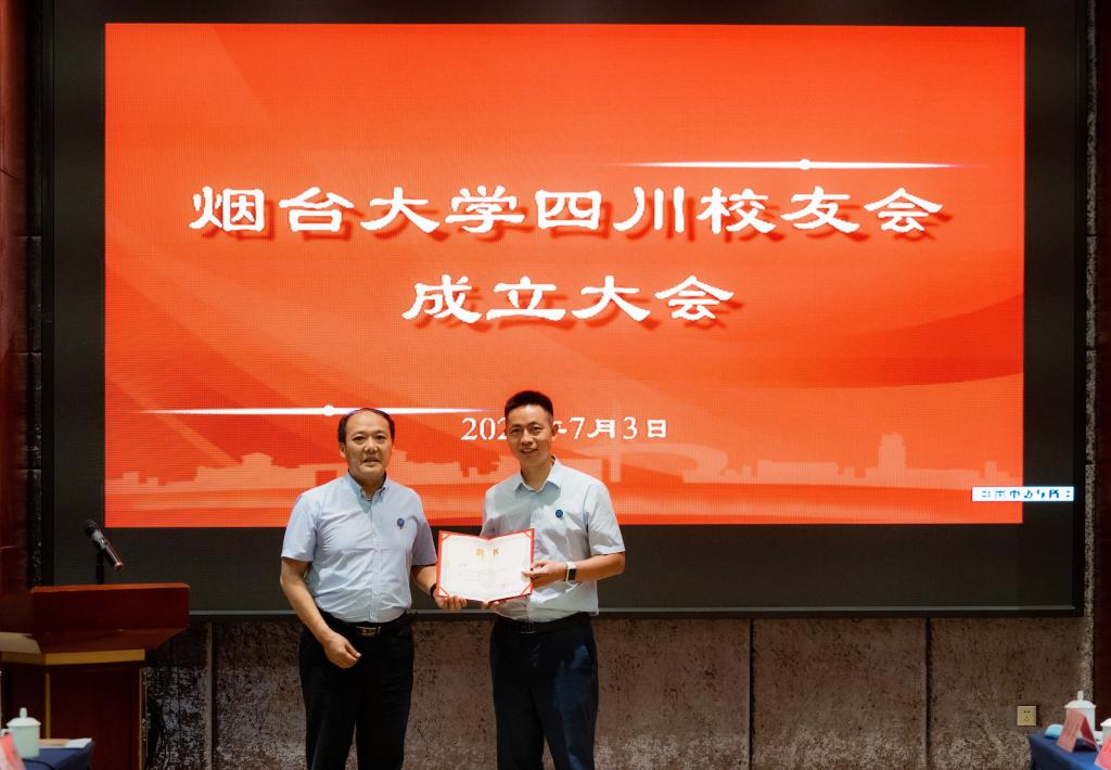 张殿臣宣布bob体育在线app四川校友会正式成立,为四川校友会授牌、授旗。于秀国为四川校友会第一届理事会会长、化学化工学院1999级校友李坤颁发会长聘书。