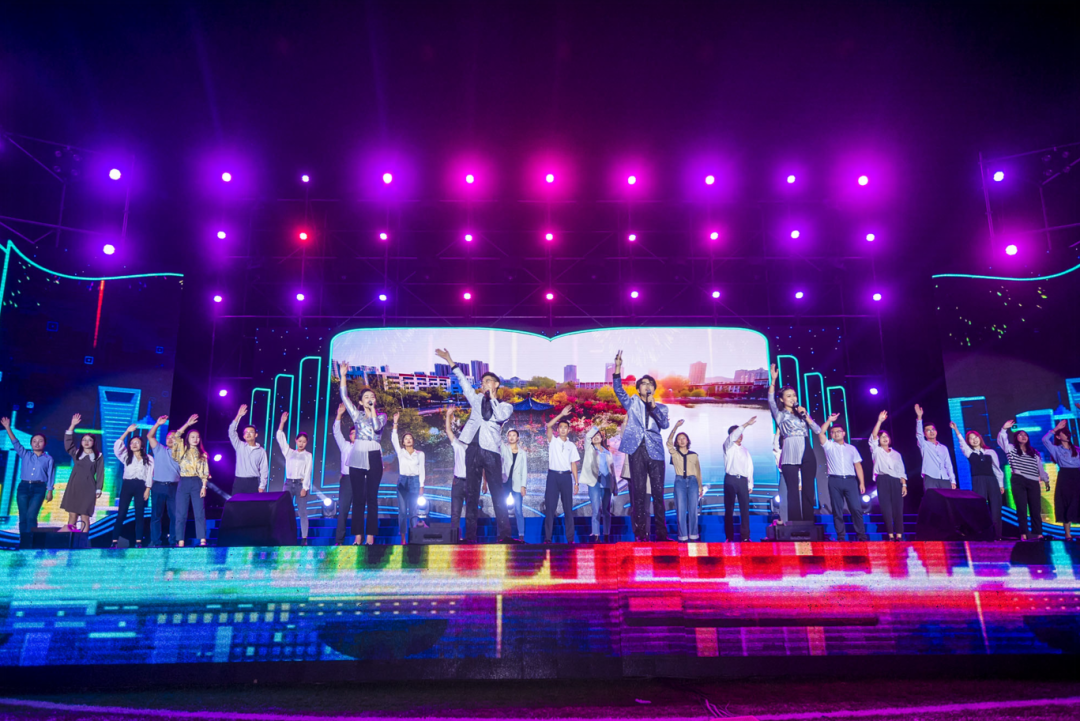 【本站讯】为庆祝新中国成立73周年华诞,迎接党的二十大胜利召开,激励和引导全校师生大力弘扬爱国主义精神,鼓舞和号召全体2022级新同学以积极向上、奋发进取的姿态开启人生新的征程,9月30日晚,bob体育在线app“乘风破浪扬帆竞,青春启航永向党”2022年迎新生文艺晚会在学校体育场举行。学校领导,相关职能部门、各学院负责人以及2022级7000余名新生参与晚会。
