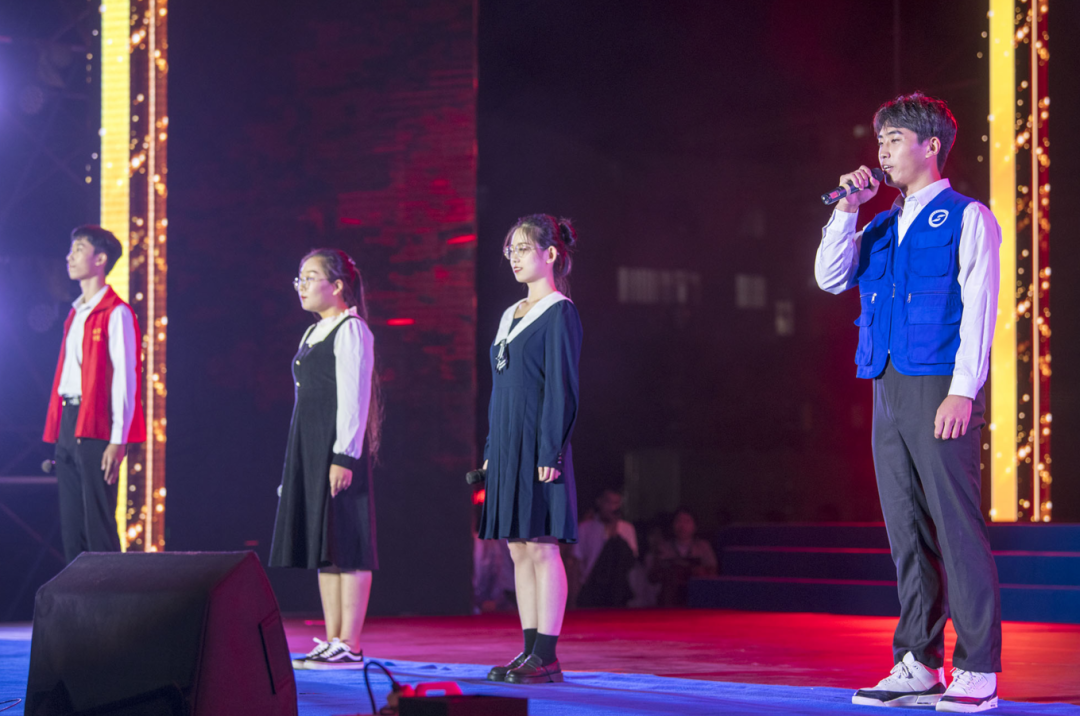 第三篇章中,讲述《能吃苦》中,四名青年学生榜样分别围绕学习成长、志愿服务、科技创新与社会实践四个方面,汇报了在青春的赛道上奋力跑出的最好成绩,用实际行动表明了当代青年在实现民族复兴赛道上奋勇争先的勇气与决心。全体新入职辅导员带来的歌曲《一起向未来》旋律轻快、尽显朝气,表达了对美好明天的憧憬,传递着信心和力量。民乐合奏《追梦行》情随弦起、心随鼓动,展现了世界各地的烟大人发扬“海纳百川、敢为人先”的烟大精神,追逐梦想的生动实践,母校与校友同频共振、共同进步。讲述《肯奋斗》中,三位来自教学、科研、学生工作领域的青年教师代表围绕自己的故事,诠释出“坚韧不拔、埋头苦干,辛勤耕耘、无私奉献,关爱学生、甘为人梯”的烟大“孺子牛”精神。合唱《中国青年》恢弘大气,表达出烟大青年坚定信念、志存高远,怀揣梦想、勇当先锋的信心和决心。“伟大的中国共产党!乘风破浪,扬帆远航,领航中国在新时代的征程上……”高亢激昂的《领航》歌声响起,带领全场观众走过中国共产党百年光辉历程,唱响喜迎二十大、永远跟党走、奋进新征程的主旋律。