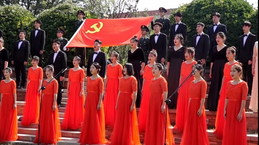 【本站讯】“以坚定信念宣言,江山就是人民,人民就是江山……”近日,在党的二十大胜利召开之际,烟大学子在校园里唱响《人民江山》,用动听的歌声,抒发真挚的情感,唱出新时代烟大青年“永远跟党走、奋进新征程”的最强音。