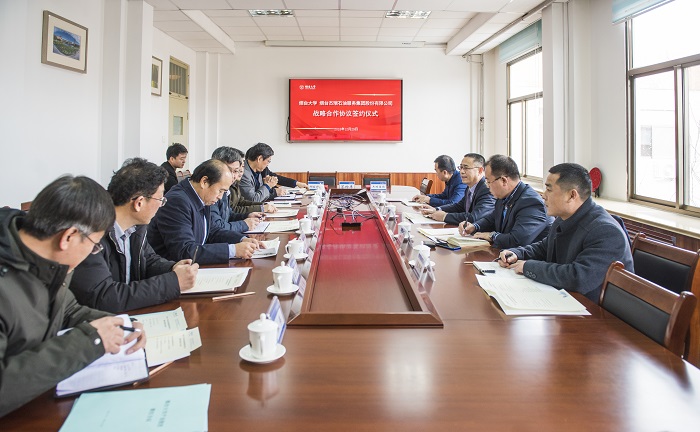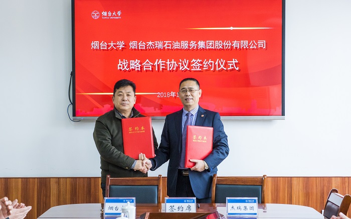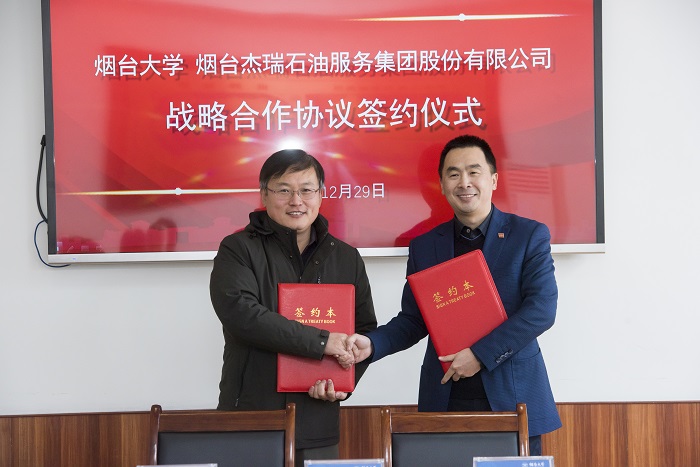 12月29日,我校与烟台杰瑞石油服务集团股份有限公司战略合作协议签约仪式暨深入合作座谈会在办公楼435举行。党委书记张伟,副校长孙祥斌、郝曙光,学校办公室、科技处、服务地方办公室、环境与材料工程学院、建筑学院相关负责人参加签约活动。杰瑞集团高级副总裁、杰瑞环保董事长王丕学,副总裁谢猛,杰瑞环保集团副总工程师、杰瑞环保研究院院长岳勇应邀出席。副校长郝曙光主持签约仪式与座谈会。