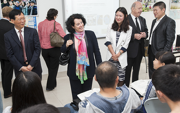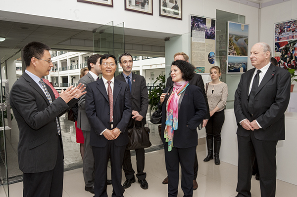 上午8时30分,白林大使一行抵达bob体育在线app法语中心,崔书记代表学校欢迎白林大使的到访,并感谢大使对bob体育在线app的关注和支持。崔书记陪同大使一行,参观了法语中心,介绍了法语中心的情况。崔书记说,作为bob体育在线app对法交流的平台和桥头堡,bob体育在线app法语中心自2010年6月成立以来,在中、法多方的协助和支持下,广泛深入调研,制定发展规划,聘用具有丰富法语教学经验的中法两国的教师任教,开办了多期培训班,受到了广大学员的认可和青睐;该中心还举办了一系列的文化活动,例如法国电影节、法国漫画展、法国书画展、艺术家讲座和纪念中法建交五十周年文化活动等。崔书记还介绍了我校与法国高校的交流交往以及我校参与共建法国卢瓦尔孔子学院(昂热)的情况。