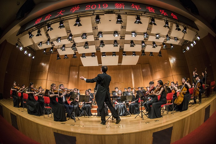 音乐会在传统民乐《春节序曲》的欢快演奏中拉开帷幕。《小河淌水》《京调》等欢快的乐曲反映了烟大人经过一年的努力喜获“一流学科”、国家级教学成果奖、国家专利金奖等重大成就的喜悦心情。古筝、笙、箱鼓、中阮的高超表演,带领全场观众领略了中华优秀传统文化的别样风采。全场观众在《红旗颂》的激扬宏大旋律里,品味了改革开放40年来国家波澜壮阔的发展历程和举世瞩目的巨大成就。管弦乐合奏《第二圆舞曲》《波斯进行曲》《多瑙河之波圆舞曲》表现了全体烟大人对2019的美好展望。歌曲《我的太阳》《绒花》《饮酒歌》歌唱新时代、歌唱美好生活,将音乐会推向高潮。音乐会在经典贺年乐《拉德斯基进行曲》中徐徐落下帷幕。