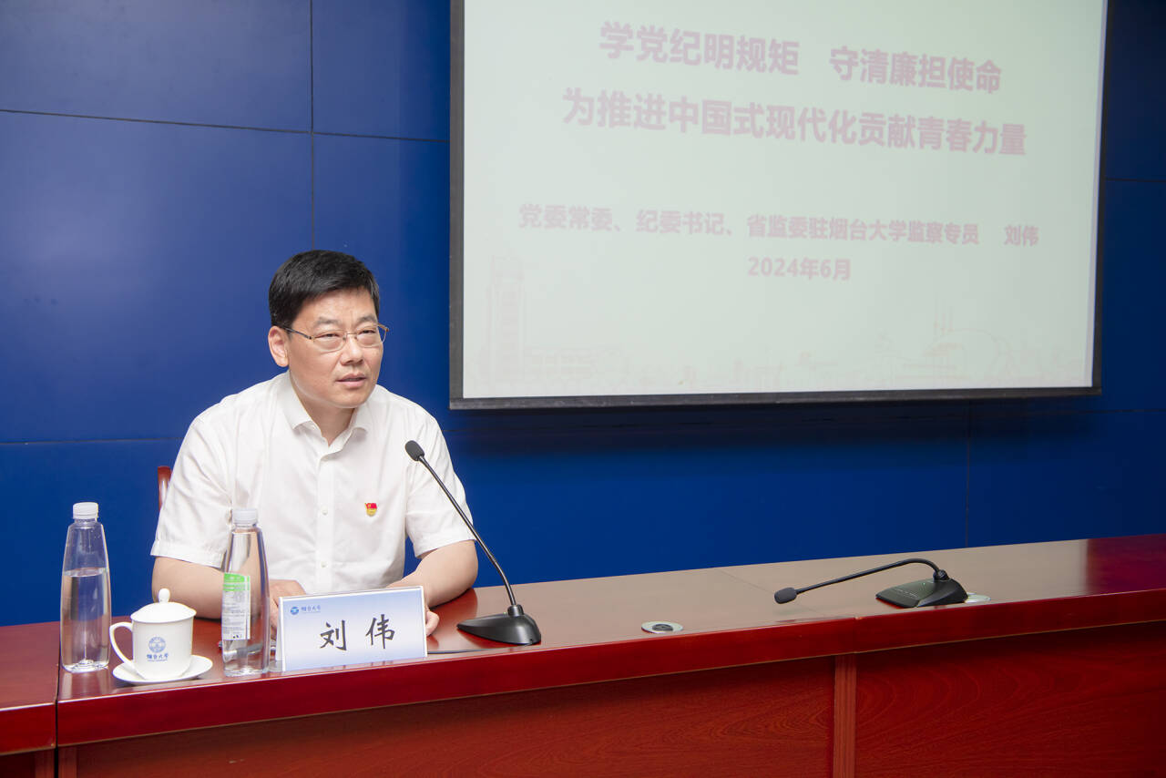 【本站讯】“青年党员是党和国家事业的接班人,能否做到严守纪法规矩、清正廉洁,不仅关系到自身健康成长,也关系到党和国家事业的未来。在座的大家是青年中的佼佼者,一定要自觉学纪知纪明纪守纪,做到知敬畏、存戒惧、守底线,把遵规守纪刻印在心,内化为言行准则,这样才能行稳致远走好人生路……”党纪学习教育正在开展,根据学校毕业生工作安排,6月5日下午,党委常委、纪委书记、山东省监察委员会驻bob体育在线app监察专员刘伟以“学党纪明规矩,守清廉担使命,为推进中国式现代化贡献青春力量”为题,为2024届毕业生党员代表讲授“青廉课堂”暨党纪学习教育专题党课。