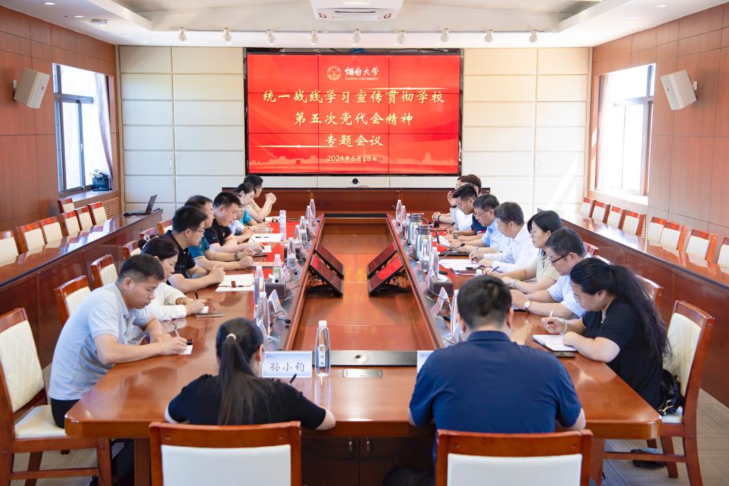 王强指出,学校统一战线要提高政治站位,从战略和全局的高度充分认识学校第五次党代会召开的重大意义,切实把思想和行动统一到学校党委的决策部署上来,迅速掀起学习宣传贯彻学校第五次党代会精神的热潮。要锚定目标任务,紧紧围绕学校第五次党代会提出的“一五八一”总体部署,立足服务国家和全省重大战略,立足学校、学科实际,立足教学、科研、管理等本职岗位,找准统一战线发挥作用的切入点和着力点,勇于担当、加压奋进,全面激发干事创业热情。要主动融入学校高质发展格局,主动对接学校中心工作和地方经济社会发展大局,多谋创新之举、多搞实地调查,多做深入研究、多建睿智之言、多献务实之策,真正将学校第五次党代会精神的学习宣传贯彻成果切实转化为解决现实问题、推动高质量发展的实际成效,努力为实现建成特色鲜明、开放创新、国内外具有重要影响力的高水平大学贡献统战力量。