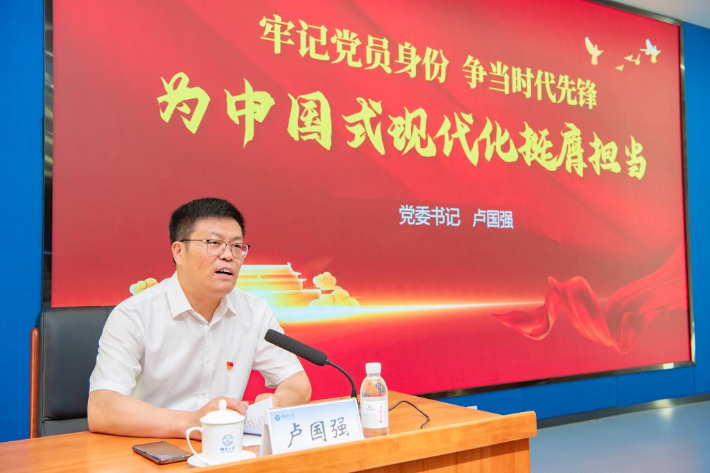 卢国强勉励同学们,要坚定理想信念,加强党性修养,永葆政治本色。自觉做党的创新理论的笃信笃行者,坚持锤炼党性,补足精神之钙,强固思想之基,不断增强理论自信和行动自觉。要践行初心使命,发挥先锋作用,永葆为民情怀。牢记党的教诲,矢志做为民造福的无私奉献者,引领优良学风、带头争先创优、倡导文明自律,跑好历史接力棒、当好事业接班人。要锤炼过硬本领,贡献青春力量,永葆奋斗姿态。做勇于担当作为的不懈奋斗者,把奋斗精神体现在完成每一项学习任务、做好每一件日常小事、履行每一项工作职责的实际行动中,用不懈奋斗绘就青春底色。要崇德向善尚美,严守纪律规矩,永葆敬畏之心。砥砺政治品格,把党员的身份当作镜子,把党的要求和党的规章制度当作量尺,做一心为公、一身正气、一尘不染的合格党员。