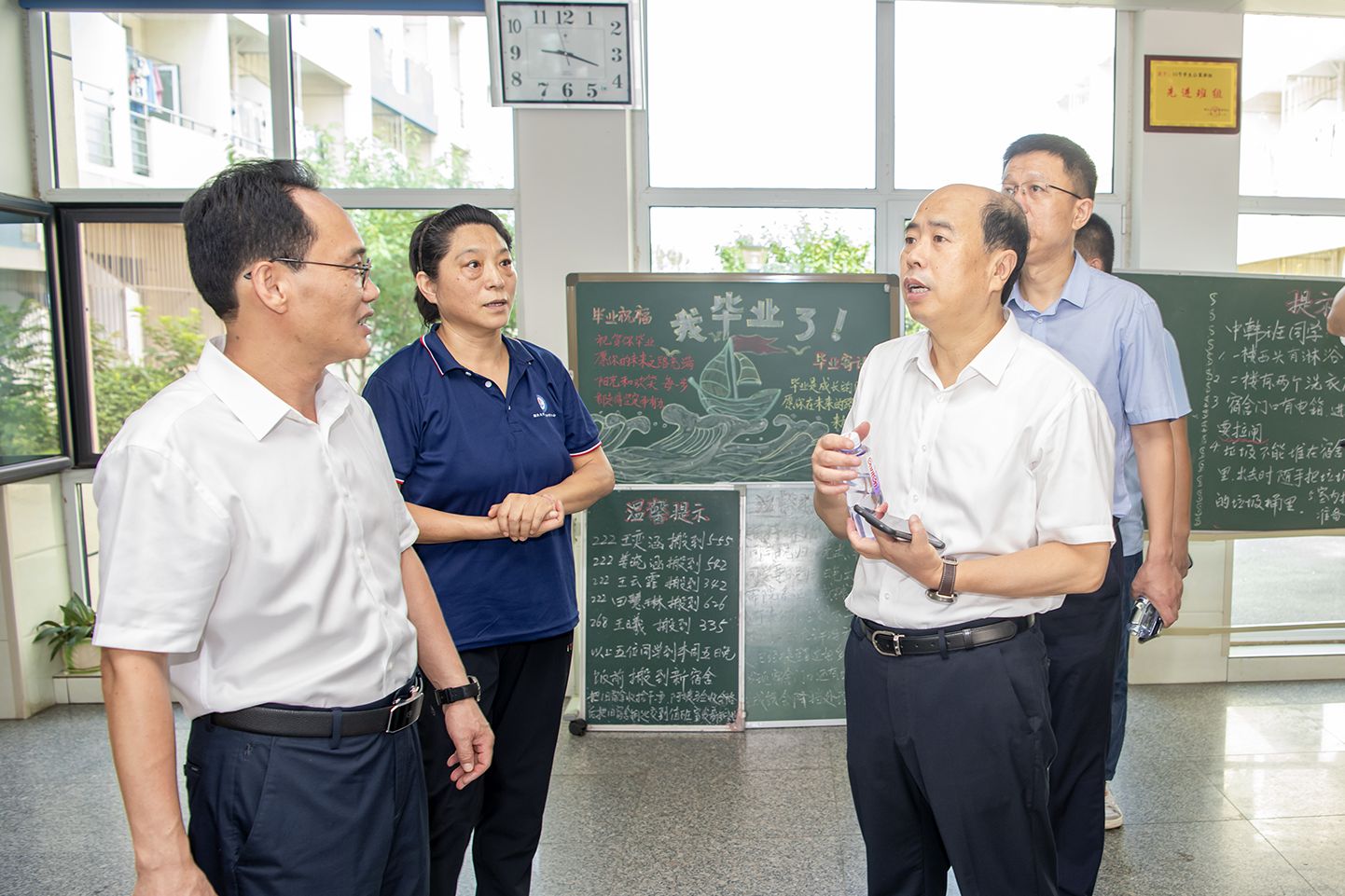 学校领导先后到大学生活动中心、第七餐厅、学生公寓、实验大楼、第五教学楼等地,查看大学生活动中心、学生公寓设施更新情况和第七餐厅装修施工进度,对实验室仪器设备安全操作规程和设备使用管理情况、教学楼教学设施检修及环境卫生等进行细致检查,现场听取有关负责人汇报,并对存在的短板、弱项提出整改要求。