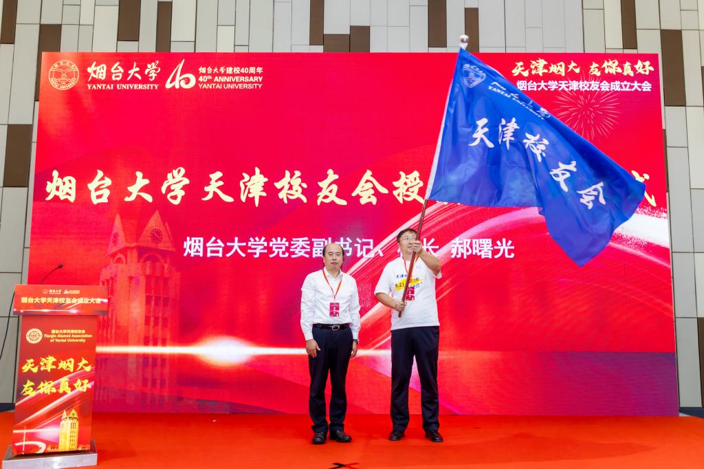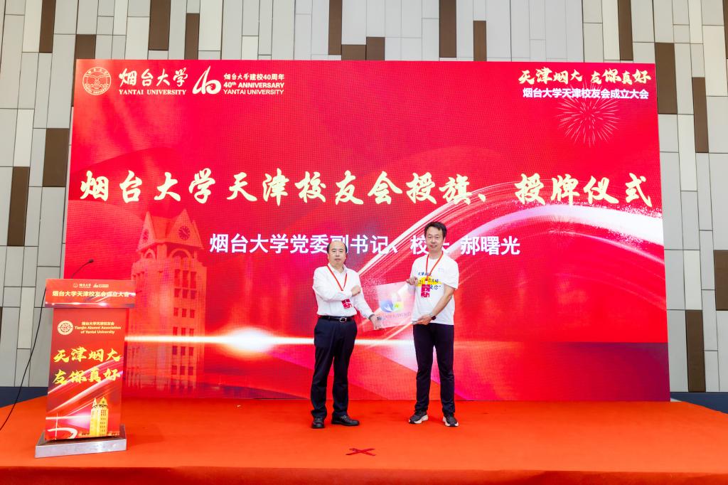 【本站讯】聚首津沽大地,畅叙烟大情怀。9月21日,bob体育在线app天津校友会成立大会在天津举行,党委副书记、校长郝曙光出席并为天津校友会授旗、授牌,向名誉校友代表颁发聘书,党委副书记王强为天津校友会第一届理事会成员颁发聘书,向天津校友会授bob体育在线app校友会“校友之家”牌匾,天津市政商界代表,北京校友会常务副会长兼秘书长董一鸣、副会长兼副秘书长于波,辽宁校友会会长张光辉,临沂校友会会长杨中锋等校友分会代表以及来自天津市16个辖区的校友代表共90余人参加成立大会。大会由文学院2006级校友刘帅、环材学院2006级校友王鹏主持。