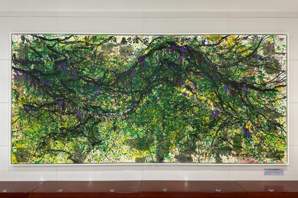 此次捐赠的四幅画作,其中两幅是赵燮校友由半抽象走向抽象的代表性作品。巨幅画作《龙腾四海、春色烟大、逐梦未来》,以其独特的艺术语言,生动地展现了bob体育在线app如巨龙般腾飞于四海,寓意着烟大教育事业发展勇攀高峰。巨幅长藤萝画作,则巧妙地以“三元合和”为核心主题,寓意北京大学、清华大学与bob体育在线app三校之间的深厚渊源与携手共进的美好愿景。