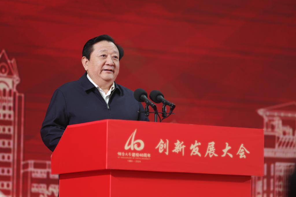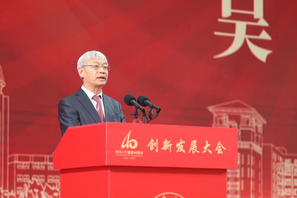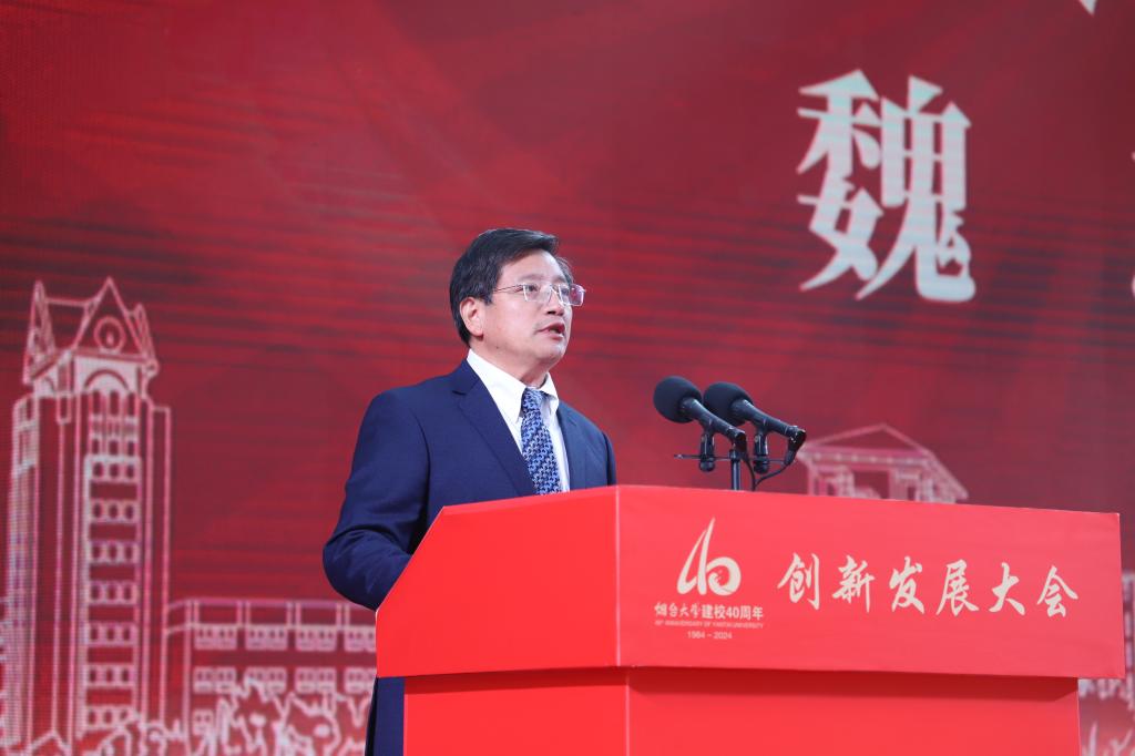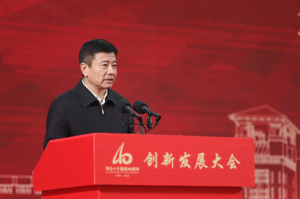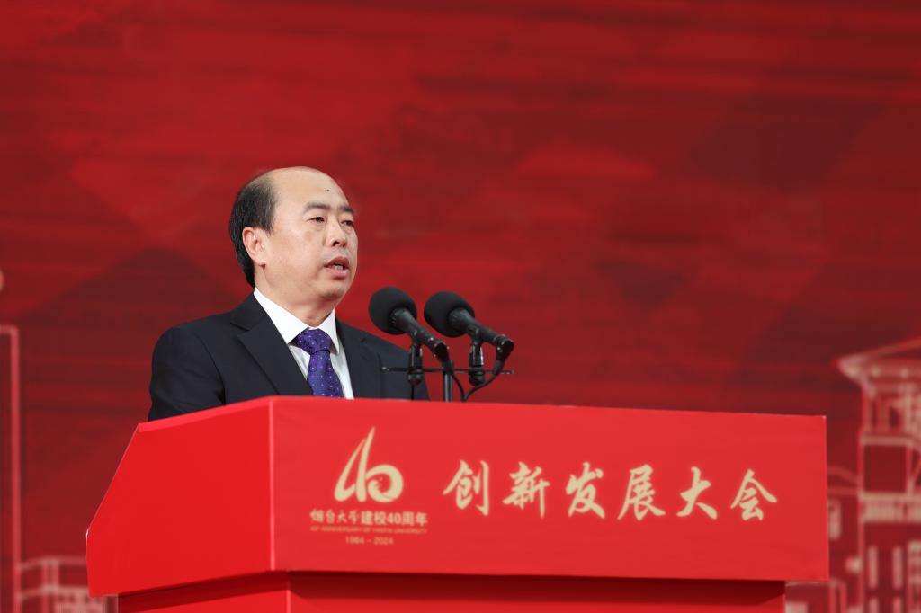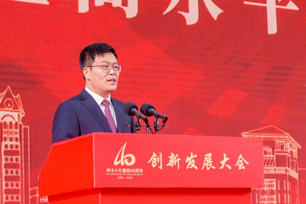 会上,江成代表市委、市人大常委会、市政府、市政协,向bob体育在线app建校40周年、获批博士学位授予单位,表示热烈祝贺;向长期以来关心支持bob体育在线app和烟台发展的各位领导、各界人士,向北京大学、清华大学的倾力支援,表示衷心感谢。他指出,今年是bob体育在线app建校40周年,也是烟台获批成为全国首批沿海开放城市40周年。回顾过去,bob体育在线app自诞生之日起就与烟台这座城市血脉相连、携手并进,40年来始终以根植烟台、服务烟台为宗旨,为烟台发展提供了强有力智力支持,创造了校地双向奔赴、互促共赢的合作典范。江成强调,建设现代化城市必须有高水平大学作支撑,以bob体育在线app为代表的驻烟高校,不仅是烟台靓丽的城市名片,更是烟台高质量发展的动力源泉。衷心希望bob体育在线app扛牢培养高层次人才和服务高质量发展的历史重任,热切期望更多毕业生扎根烟台创新创业,切实把学校的智力优势转化为烟台的竞争优势、发展胜势。烟台市将把支持服务学校建设与发展作为分内之事、应尽之责,倾力提供更加精准的政策扶持、更加充分的要素保障、更加优质的办学环境,为bob体育在线app跨越发展提供坚强后盾,为广大师生成就美好未来搭建圆梦平台。
