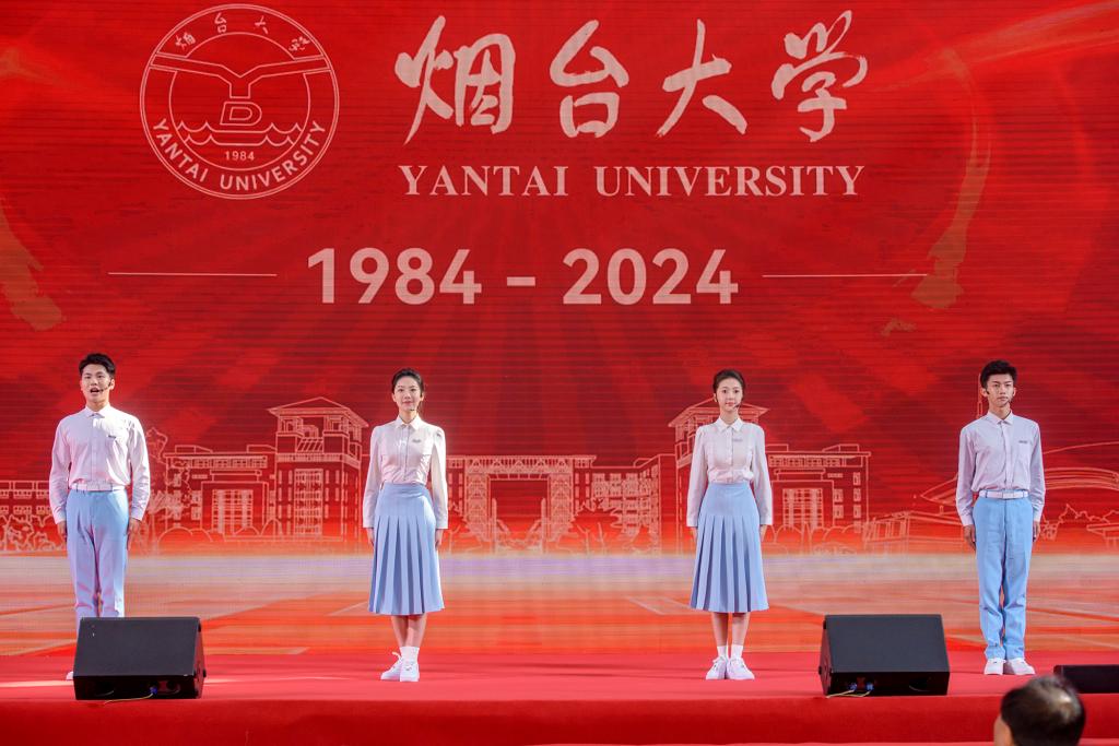 会上还播放了国外及港澳台地区友好院校和学术机构的祝福视频,烟大青年学子以一首原创献词《韶华与共四十载,奋楫笃行向未来》献礼烟大。