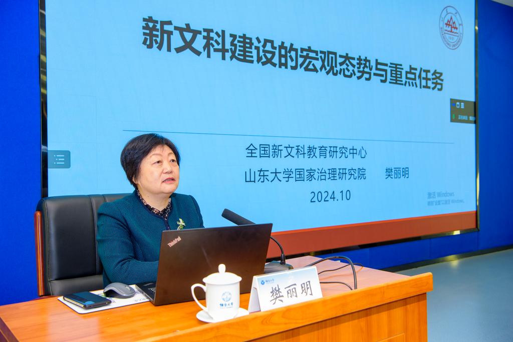 研讨会上,樊丽明作《新文科建设的宏观态势与重点任务》主题报告。报告深入分析了新文科建设的宏观态势,解答了“什么是新文科”“为什么建设新文科”“怎样建设新文科”等核心问题,介绍了全国各高校推动新文科实践创新和理论创新的重要举措和标志性成果。她以教育强国建设为目标,基于当前科技革命形势和社会发展需求,阐明了未来新文科建设的重点任务,并提出了构建中国自主bob体育官方app下载苹果版体系的路径和方法。