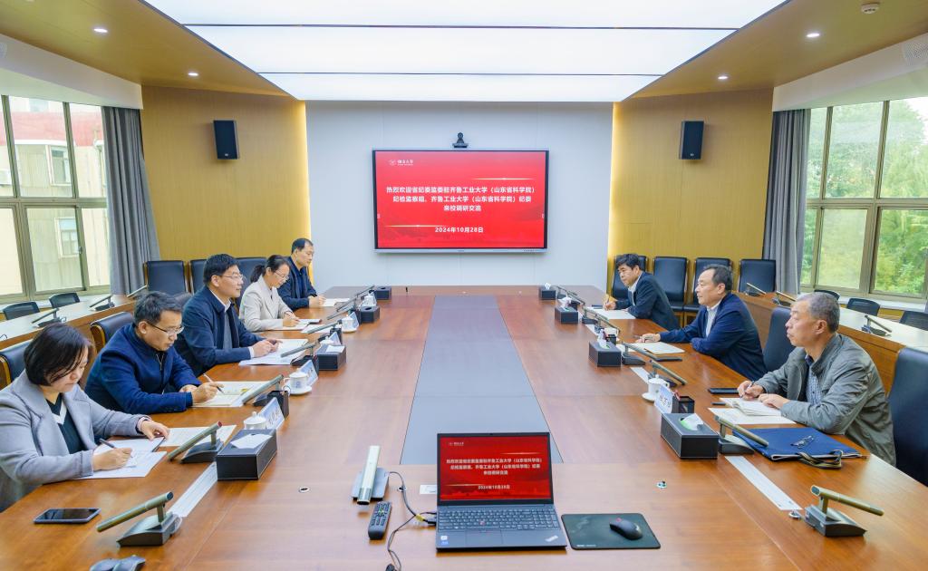 【本站讯】10月28日,省纪委监委驻齐鲁工业大学(山东省科学院)纪检监察组组长、齐鲁工业大学(山东省科学院)党委委员、纪委书记房克乐一行来校调研交流纪检监察工作。党委常委、纪委书记,省监委驻bob体育在线app监察专员刘伟出席并主持座谈会,学校纪检监察干部参加座谈交流。