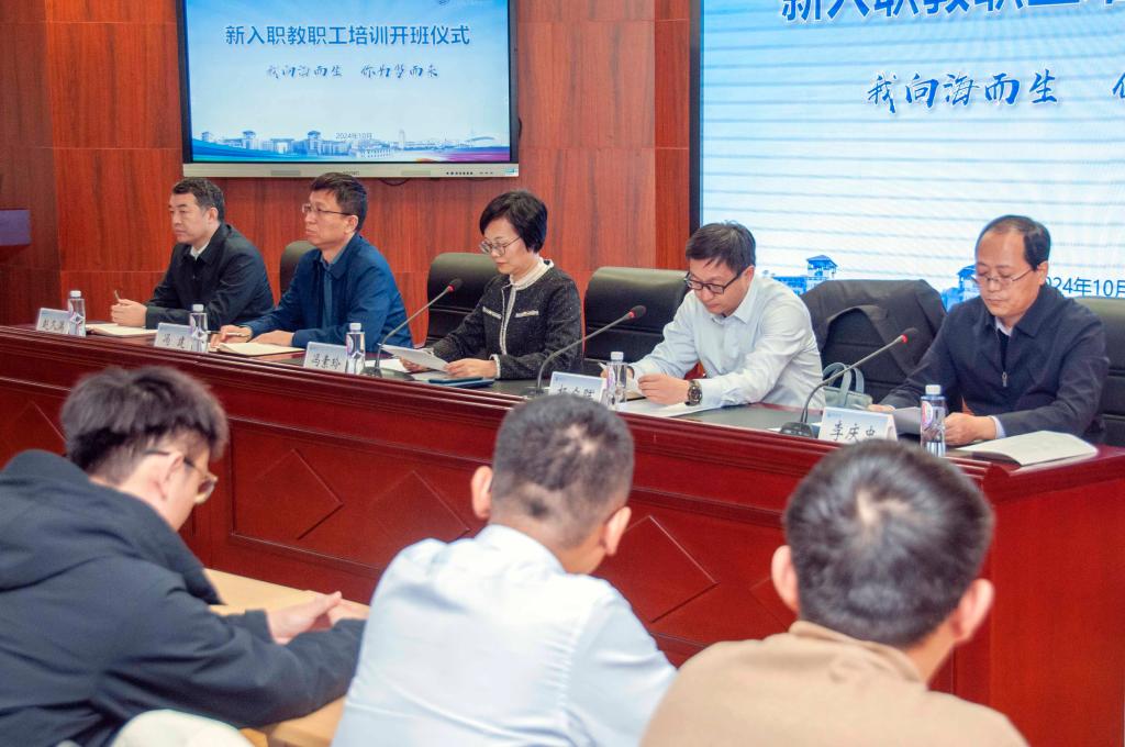 【本站讯】为进一步加强高素质教师队伍建设,落实师德师风第一标准,持续教育引导新入职教师以教育家精神为引领、更快更好地胜任工作岗位,10月31日,学校举行2024年度新入职教职工培训开班仪式,启动本年度新入职教职工培训工作。党委常委、副校长冯素玲出席开班仪式并讲话,党委教师工作部、党委学生工作部(处)、教务处、人事处主要负责人,全体新入职教职工参加开班仪式。开班仪式由党委常委、宣传部部长、教师工作部部长杨众晖主持。