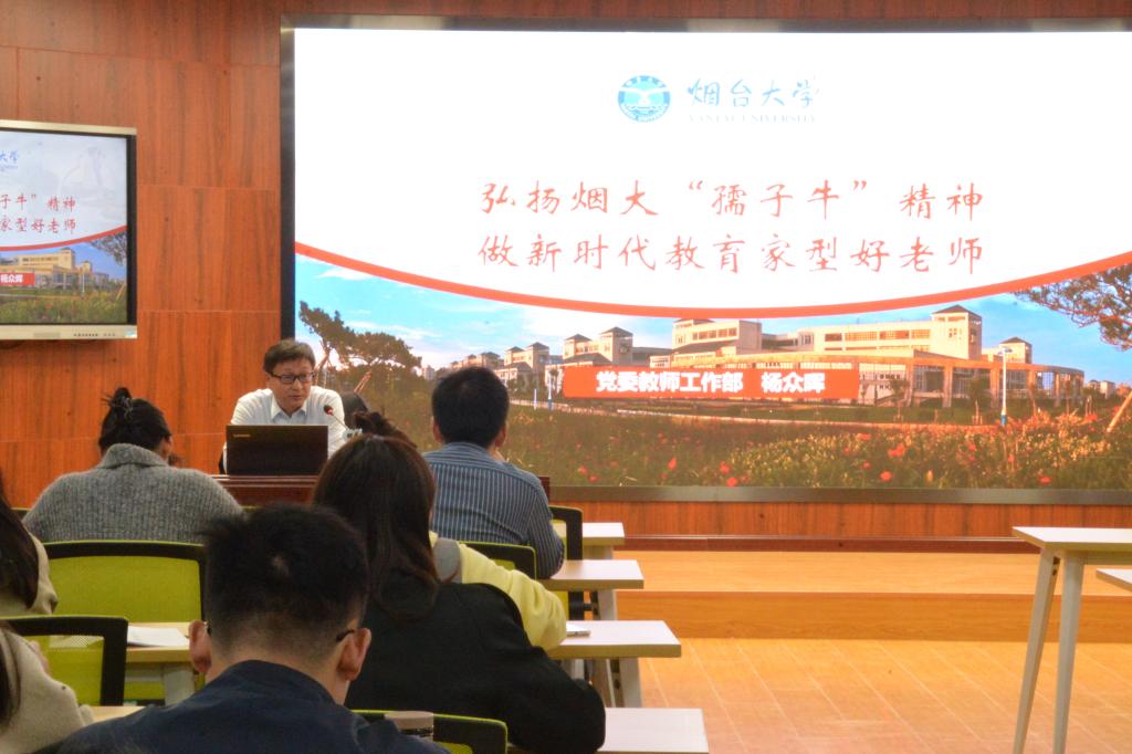 开班仪式结束后,杨众晖为参训教师作了题为《弘扬烟大“孺子牛”精神,做新时代教育家型好老师》的师德师风专题培训。