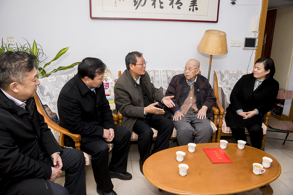 侯复东与温院士亲切交谈,详细询问他的身体和生活情况,高度赞扬温院士为我国航空事业发展做出的突出贡献,祝福他健康长寿、新春快乐。