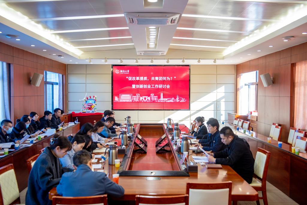 【本站讯】为深入贯彻落实学校2025年工作研讨会精神,落实改革提质部署要求,全面加强团干部队伍建设,推动学校共青团工作高质量发展,3月5日下午,“促改革提质,共青团何为”暨创新创业工作研讨会在育秀大楼316会议室召开。党委常委、副校长姚昌出席会议并讲话,校团委书记张岩主持会议,校团委全体工作人员及各学院团委负责人参加会议。