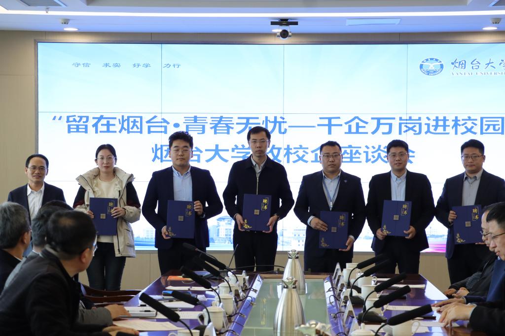 活动过程中,烟台市公共就业和人才服务中心负责人、烟台黄渤海新区人社局负责人、校领导、各学院及部门负责人分别在主校区和八角湾校区与东方化学、道恩集团、中集来福士、艾创机器人等10余家企业开展座谈交流,进行企业和人才需求推介,就bob体育官方app下载苹果版、学科建设、校企合作等方面深入探讨并向重点企业代表颁发职业指导(就业创业)导师聘书。
