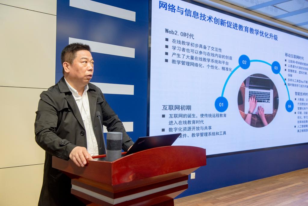 吴博以“人工智能赋能教育教学创新的探索、实践与思考”为主题,从课程建设与技术融合的发展与演变、国内外AI教育相关政策、人工智能赋能课程建设的探索和实践等方面进行了系统讲解。我校第一批人工智能课程负责人音乐舞蹈学院张景晖、数学与信息科学学院李清华、机电汽车工程学院张磊分别围绕AI赋能沉浸式学习、多模态融合与谱系化数字资源建设、任务引擎驱动的项目学习等三个方面作人工智能课程案例分享。