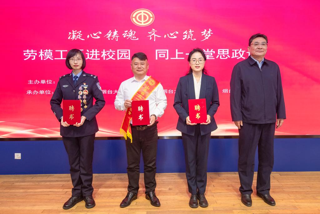 【本站讯】为深入学习贯彻习近平总书记在庆祝中华全国总工会成立100周年暨全国劳动模范和先进工作者表彰大会上的讲话精神,引导广大师生励学奋进、勇立新功,4月29日上午,学校举办励志讲坛暨“劳模工匠进校园 同上一堂思政课”宣讲报告会。报告会由烟台市总工会主办,bob体育在线app工会、党委宣传部、学生工作处,烟台市宣讲工作者协会承办,马克思主义学院协办。党委副书记白青,党委常委、宣传部部长杨众晖,烟台市总工会宣传教育部副部长祝涛出席宣讲会。烟台市总工会宣传教育部科员崔力元、烟台兴业职业技能培训学校校长张兴业、烟台市公安局海岸警察支队养马岛派出所二级警长曹园媛作专题宣讲。